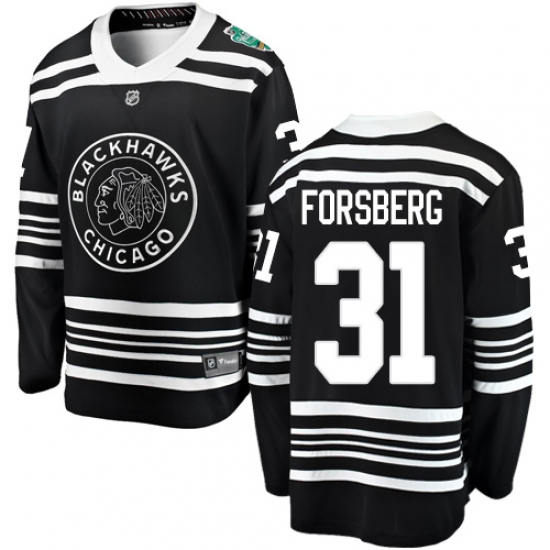 Women's Chicago Blackhawks #31 Anton Forsberg Black 2019 Winter Classic Fanatics Branded Breakaway NHL Jersey