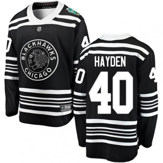 >Youth Chicago Blackhawks #40 John Hayden Black 2019 Winter Classic Fanatics Branded Breakaway NHL Jersey