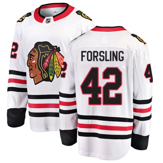 Home>NHL>Chicago Blackhawks>Gustav Forsling>Youth Chicago Blackhawks #42 Gustav Forsling Fanatics Branded White Away Breakaway NHL Jersey