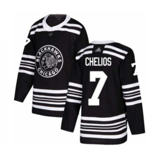 Men's Adidas Chicago Blackhawks #7 Chris Chelios Authentic Black 1917-2017 100th Anniversary NHL Jersey