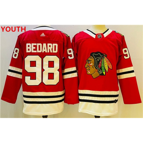 >Youth Chicago Blackhawks #98 Connor Bedard Red Black Stitched Jersey