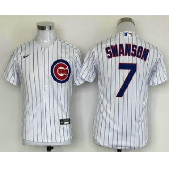Youth Chicago Cubs #7 Dansby Swanson White Stitched MLB Cool Base Nike Jersey