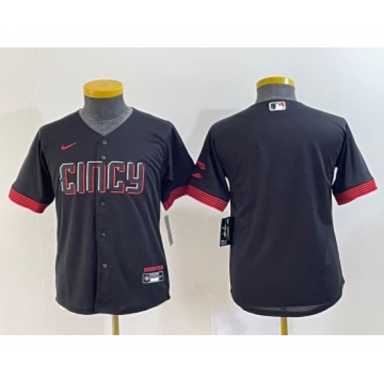 >Youth Cincinnati Reds #11 Barry Larkin Black 2023 City Connect Cool Base Stitched Jersey