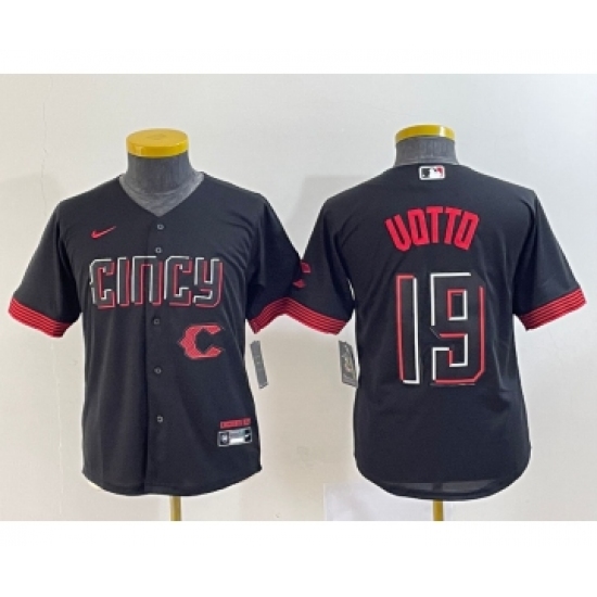 >Youth Cincinnati Reds #19 Joey Votto Black 2023 City Connect Cool Base Stitched Jersey1