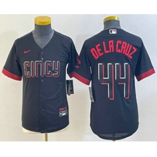 Youth Cincinnati Reds #44 Elly De La Cruz Black 2023 City Connect Cool Base Stitched Jersey 1