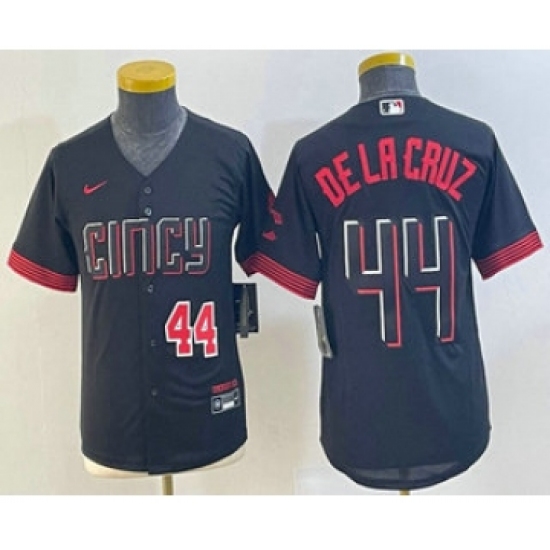 Youth Cincinnati Reds #44 Elly De La Cruz Black 2023 City Connect Cool Base Stitched Jersey