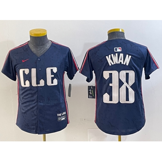 >Youth Cleveland Guardians #38 Steven Kwan Navy 2024 City Connect Limited Stitched Baseball Jersey