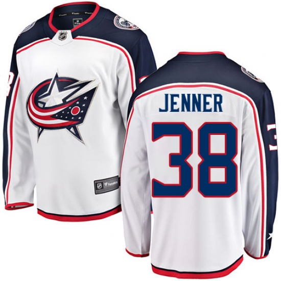 Home>NHL>Columbus Blue Jackets>Boone Jenner>Youth Columbus Blue Jackets #38 Boone Jenner Fanatics Branded White Away Breakaway NHL Jersey