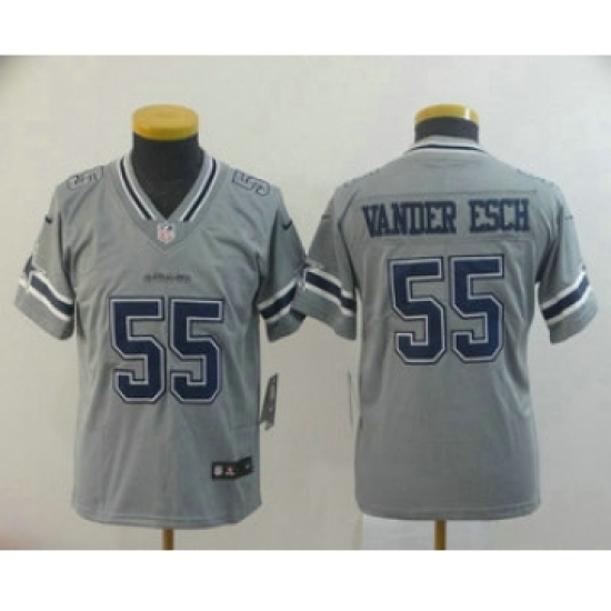 >Youth Dallas Cowboys #55 Leighton Vander Esch Grey 2019 Inverted Legend Stitched NFL Nike Limited Jersey