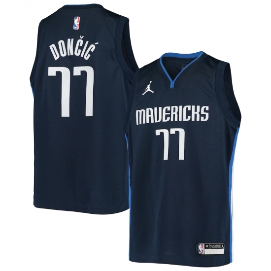 Youth Dallas Mavericks #77 Luka Doncic Jordan Brand Navy 2020-21 Swingman Player Jersey