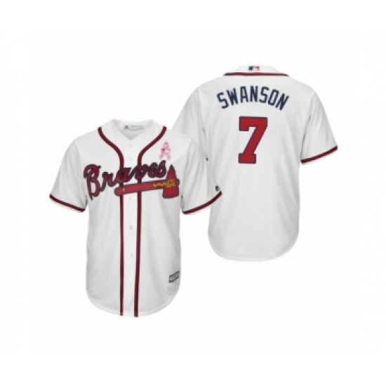 >Youth Dansby Swanson Atlanta Braves #7 White 2019 Mothers Day Cool Base Jersey