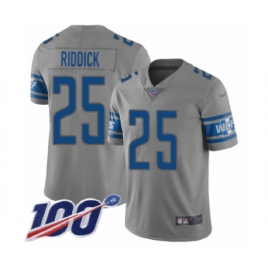 >Youth Detroit Lions #25 Theo Riddick Limited Gray Inverted Legend 100th Season Football Jersey
