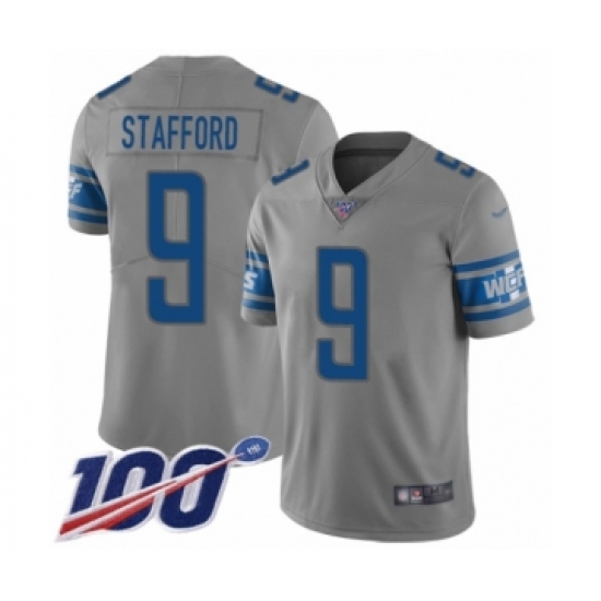 >Youth Detroit Lions #9 Matthew Stafford Limited Gray Inverted Legend 100th Season Football Jersey