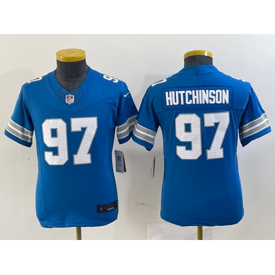 >Youth Detroit Lions #97 Aidan Hutchinson Limited Blue 2024 FUSE Vapor Jersey