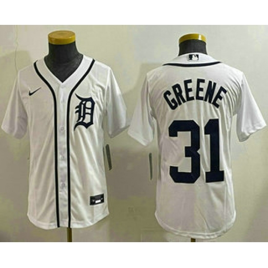>Youth Detroit Tigers #31 Riley Greene White Cool Base Stitched Jersey