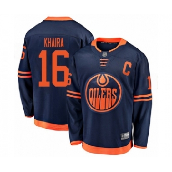 Men's Edmonton Oilers #16 Jujhar Khaira Authentic Navy Blue Alternate Hockey Jersey
