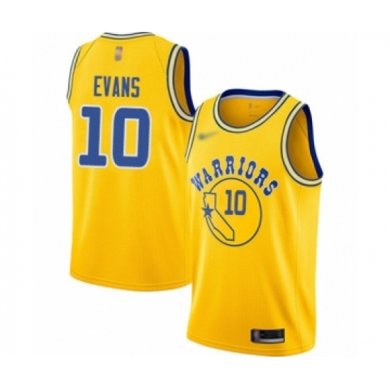 >Youth Golden State Warriors #10 Jacob Evans Swingman Gold Hardwood Classics Basketball Jersey