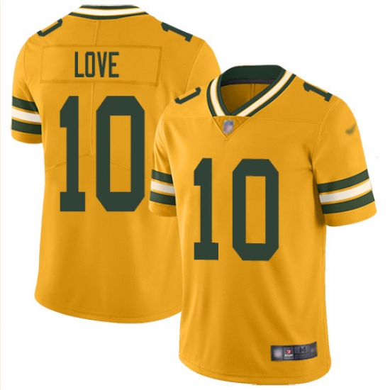 Youth Green Bay Packers #10 Jordan Love Gold Stitched NFL Limited Inverted Legend Jersey