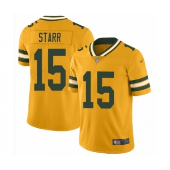 >Youth Green Bay Packers #15 Bart Starr Limited Gold Inverted Legend Football Jersey