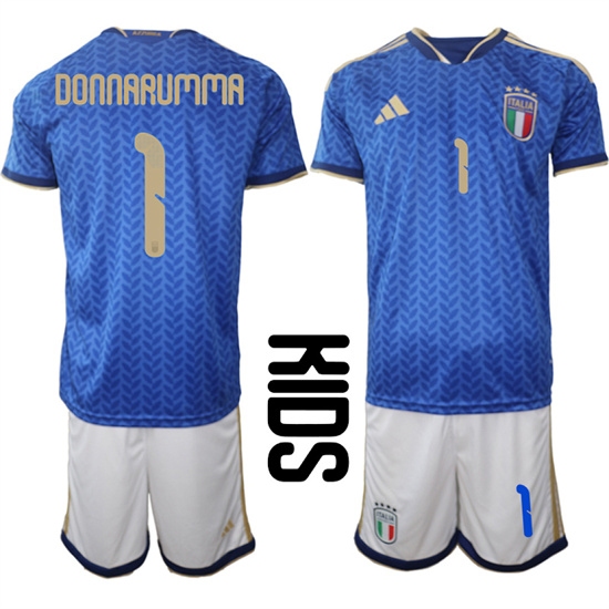 >Youth Italy #1 DONNARUMMA National Team FIFA x World Cup 2026 Home Blue On Field Kids Jerseys