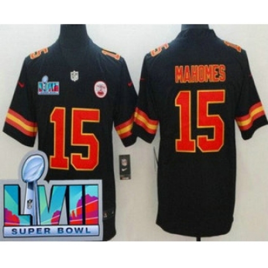 >Youth Kansas City Chiefs #15 Patrick Mahomes Limited Black Super Bowl LVII Vapor Jersey