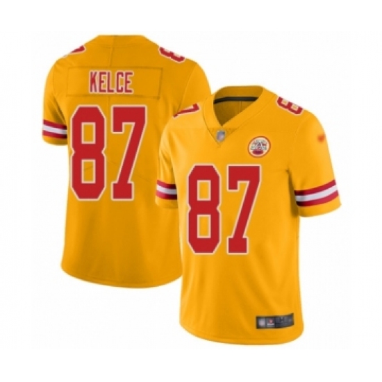 >Youth Kansas City Chiefs #87 Travis Kelce Limited Gold Inverted Legend Football Jersey