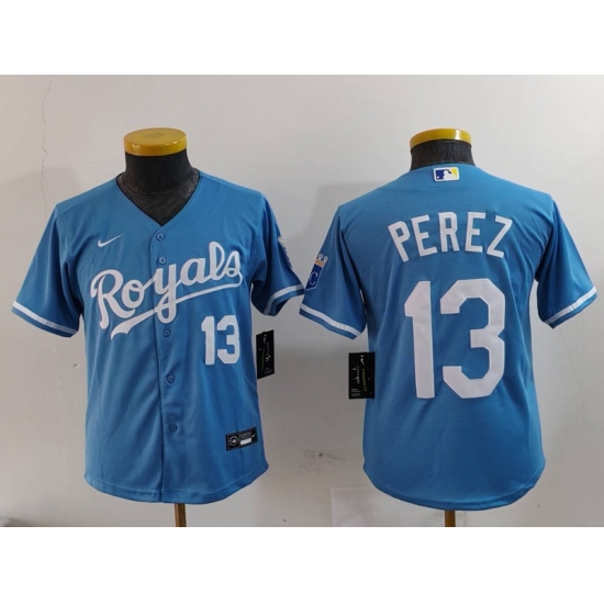 Youth Kansas City Royals #13 Salvador Perez Number Light Blue Cool Base Stitched Jersey