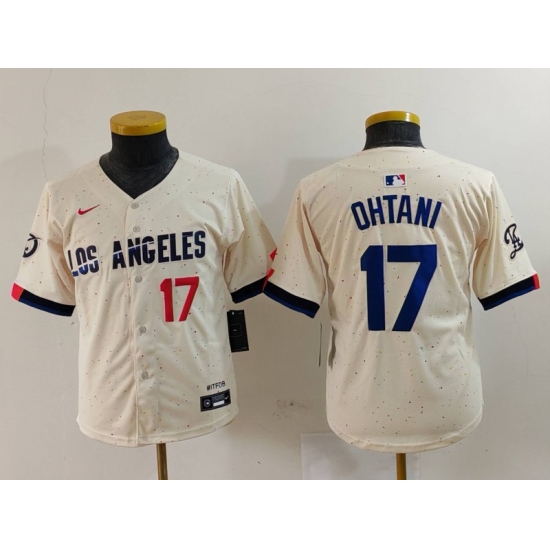 Youth Los Angeles Dodgers #17 Shohei Ohtani Number Cream Blue 2024 City Connect Limited Stitched Jersey