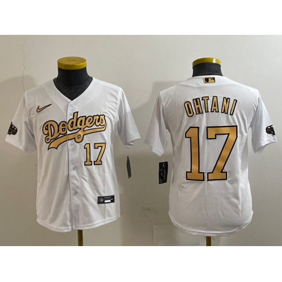 Youth Los Angeles Dodgers #17 Shohei Ohtani Number White 2022 All Star Stitched Flex Base Nike Jersey