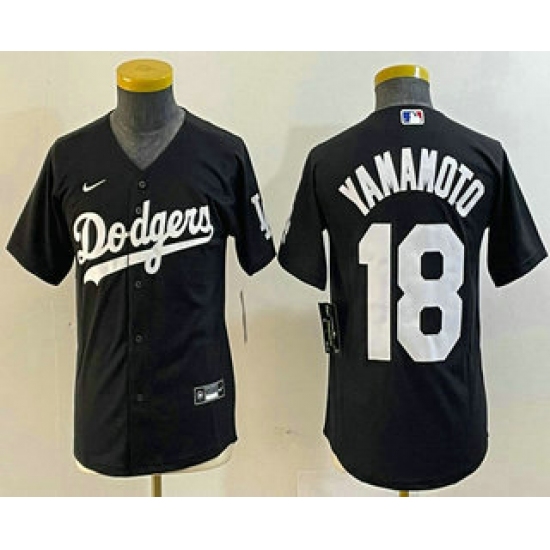 >Youth Los Angeles Dodgers #18 Yoshinobu Yamamoto Black Turn Back The Clock Stitched Cool Base Jersey3