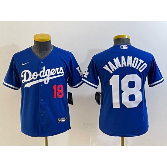 Youth Los Angeles Dodgers #18 Yoshinobu Yamamoto Number Blue Stitched Cool Base Nike Jersey
