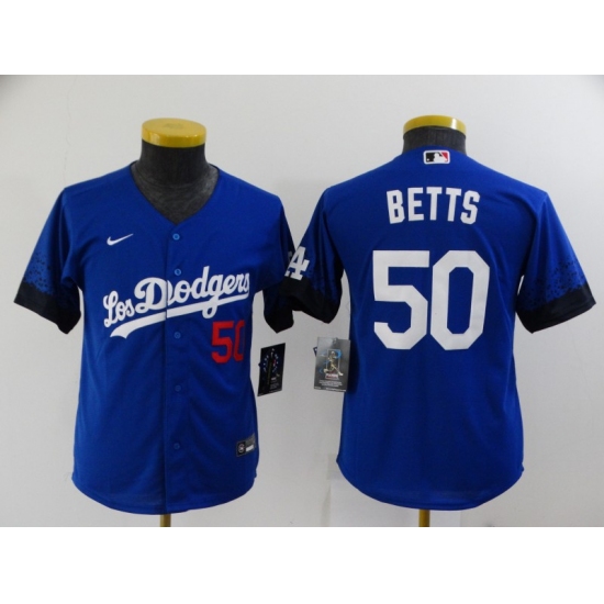 >Youth Los Angeles Dodgers #50 Mookie Betts Blue City Player Jersey
