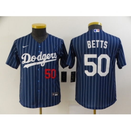 Youth Los Angeles Dodgers #50 Mookie Betts Navy Blue Pinstripe Stitched MLB Cool Base Nike Jersey