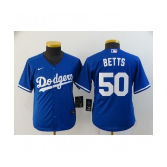 >Youth Los Angeles Dodgers #50 Mookie Betts Royal 2020 Cool Base Jersey