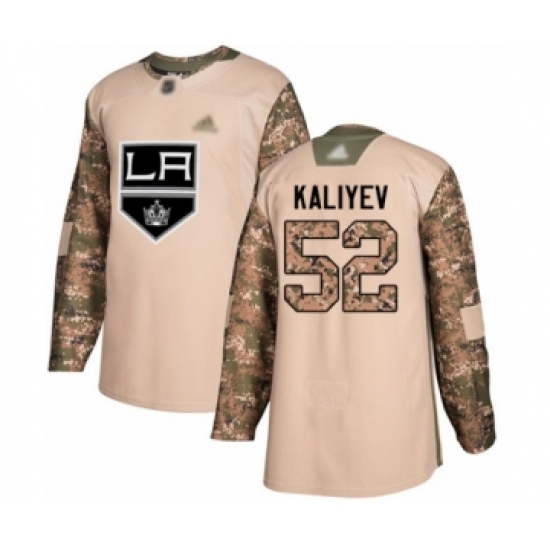 >Youth Los Angeles Kings #52 Arthur Kaliyev Authentic Camo Veterans Day Practice Hockey Jersey