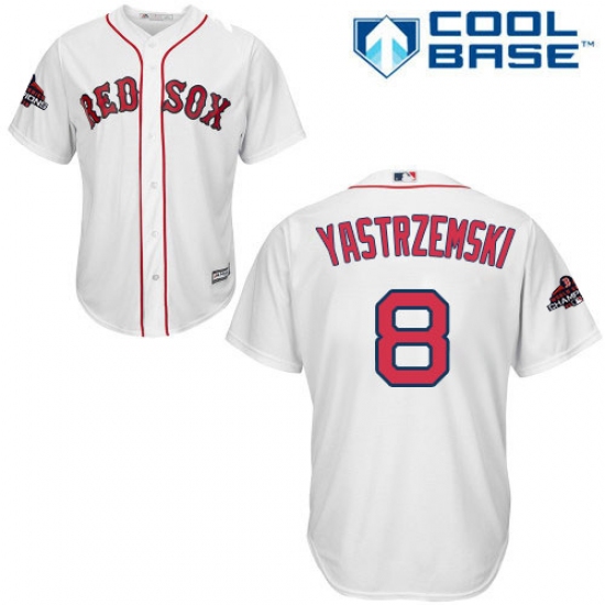 Youth Majestic Boston Red Sox #8 Carl Yastrzemski Authentic White Home Cool Base 2018 World Series Champions MLB Jersey