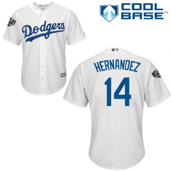 >Youth Majestic Los Angeles Dodgers #14 Enrique Hernandez Authentic White Home Cool Base 2018 World Series MLB Jersey