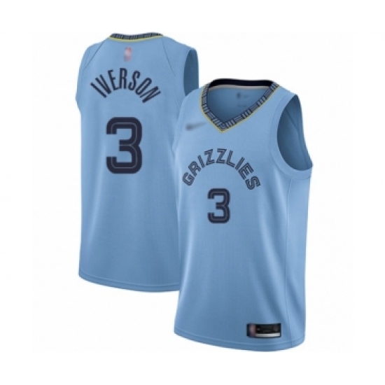 >Youth Memphis Grizzlies #3 Allen Iverson Swingman Blue Finished Basketball Jersey Statement Edition