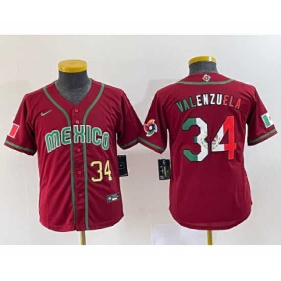 Youth Mexico Baseball #34 Fernando Valenzuela 2023 Red World Classic Stitched Jersey 5