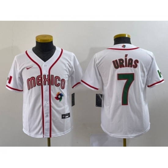 Youth Mexico Baseball #7 Julio Urias 2023 Red World Baseball Classic Stitched Jersey
