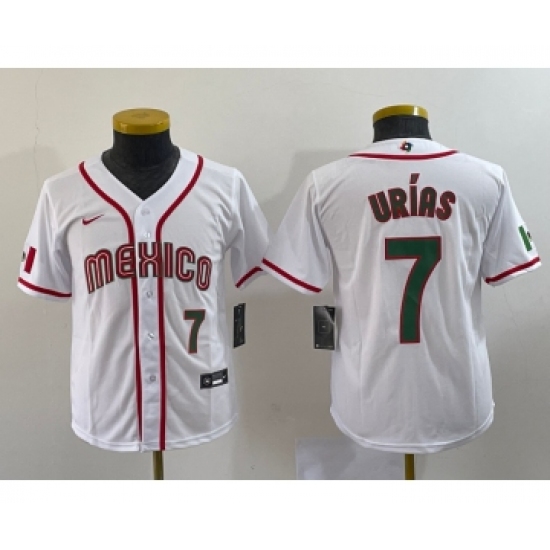 Youth Mexico Baseball #7 Julio Urias 2023 Red World Baseball Classic Stitched Jersey