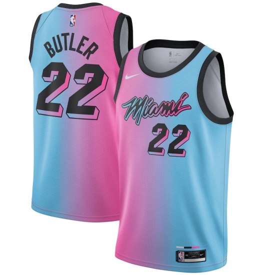 Youth Miami Heat #22 Jimmy Butler Nike Pink-Blue 2020-21 Swingman Jersey