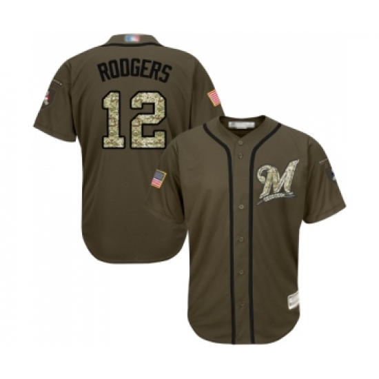 >Youth Milwaukee Brewers #12 Aaron Rodgers Authentic Green Salute to Service Baseball Jersey