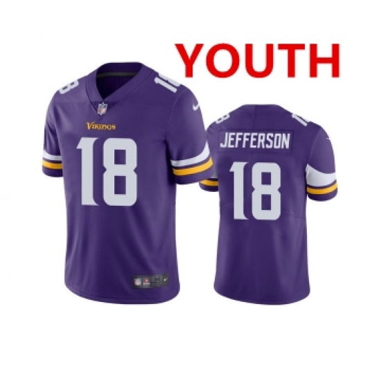 >Youth Minnesota Vikings #18 Justin Jefferson 2020 Purple Vapor Untouchable Limited Stitched Jersey