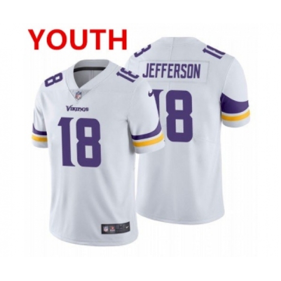 >Youth Minnesota Vikings #18 Justin Jefferson 2020 White Vapor Untouchable Limited Stitched Jersey