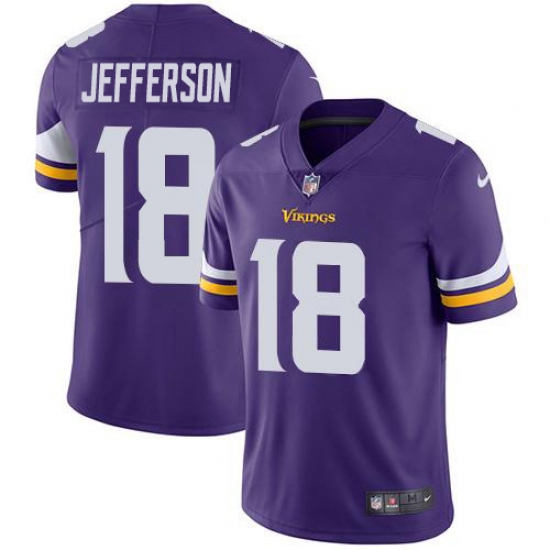 >Youth Minnesota Vikings #18 Justin Jefferson Purple Team Color Stitched NFL Vapor Untouchable Limited Jersey