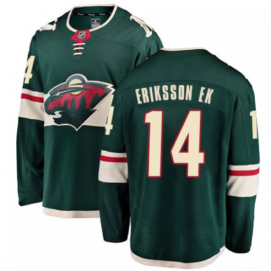 Home>NHL>Minnesota Wild>Joel Eriksson Ek>Youth Minnesota Wild #14 Joel Eriksson Ek Authentic Green Home Fanatics Branded Breakaway NHL Jersey