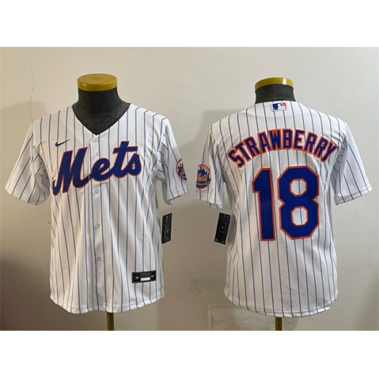 >Youth New York Mets #18 Darryl Strawberry White Cool Base Stitched Baseball Jersey