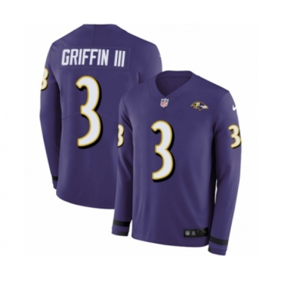 Youth Nike Baltimore Ravens #3 Robert Griffin III Limited Purple Therma Long Sleeve NFL Jersey