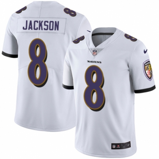 >Youth Nike Baltimore Ravens #8 Lamar Jackson White Vapor Untouchable Limited Player NFL Jersey